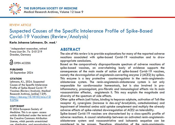 Effets indésirables des vaccins Covid-19, revue de la littérature et analyse: “L’éventail exceptionnellement large, la fréquence et la gravité des effets indésirables signalés associés à la vaccination Covid-19 dépassent le niveau connu de la vaccination conventionnelle et constituent une source d’inquiétude sérieuse. D’un point de vue pharmacologique, les spikes sont des substances très puissantes, mais ce ne sont pas des antigènes inoffensifs. Par conséquent, elles ne semblent pas convenir à l’immunisation préventive contre des infections relativement inoffensives”. “Les conditions préalables aux effets de la protéine spike, leur distribution systémique ainsi que leur détection prolongée après la vaccination sont établies, contredisant ainsi l’effet régional et limité dans le temps revendiqué. La fenêtre temporelle pour l’évaluation d’une association possible entre les effets indésirables suspectés et les vaccinations à pointes doit donc être étendue à la durée maximale de détection des pointes”. “Le spectre des effets indésirables associés à la vaccination à base de spike est excessivement large, affectant presque toutes les fonctions vitales essentielles de l’organisme humain. La gravité des effets indésirables est alarmante”. “En tout état de cause, il faut tenir compte du fait que la valeur informative des chiffres relatifs aux effets indésirables documentés par les systèmes de pharmacovigilance établis est considérablement amoindrie par la sous-déclaration due au manque de connaissance du mode d’action ou de l’ignorance des corrélations possibles, du manque de volonté des prestataires de soins de santé de déclarer et de fournir des informations, ou de leur focalisation sur d’autres nécessités. Afin d’éviter les mauvaises décisions, les autorités sont invitées à analyser en détail non seulement quelques effets indésirables suspects (par exemple, seulement 1,59 % de tous les cas signalés), mais aussi l’ensemble des effets indésirables.”